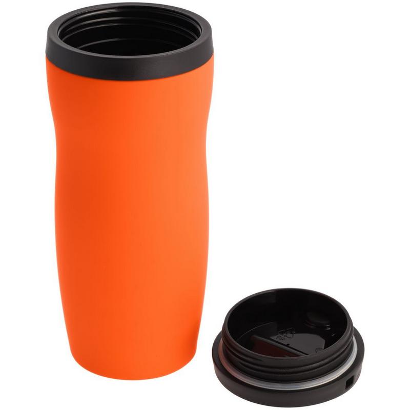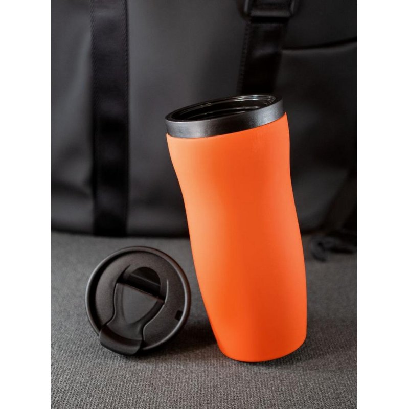 Двухслойная конструкция из нержавеющей стали снаружи и пищевого пластика внутри. Герметичная завинчивающаяся крышка с откидным клапаном для питья. Покрытие софт-тач. В отверстие в крышке можно вставить шнурок для удобного ношения стакана на руке. Шнурок в комплект не входит.