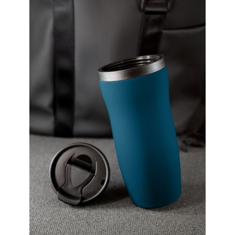 Двухслойная конструкция из нержавеющей стали снаружи и пищевого пластика внутри. Герметичная завинчивающаяся крышка с откидным клапаном для питья. Покрытие софт-тач. В отверстие в крышке можно вставить шнурок для удобного ношения стакана на руке. Шнурок в комплект не входит.