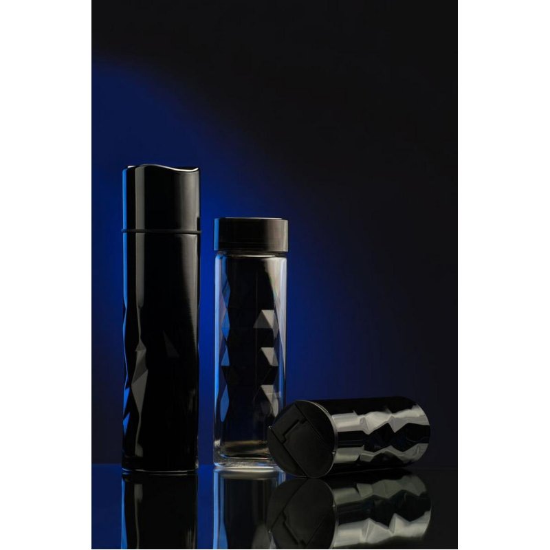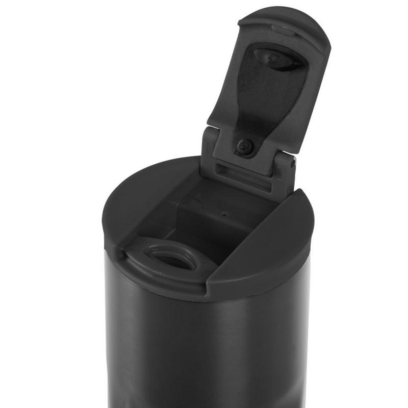 Двухслойная вакуумная конструкция из нержавеющей стали внутри и снаружи, герметичная завинчивающаяся крышка с откидным клапаном для питья.