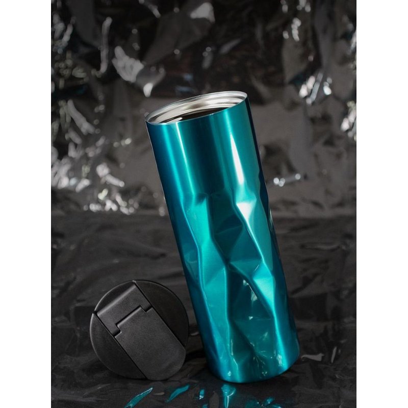 Двухслойная вакуумная конструкция из нержавеющей стали внутри и снаружи, герметичная завинчивающаяся крышка с откидным клапаном для питья.