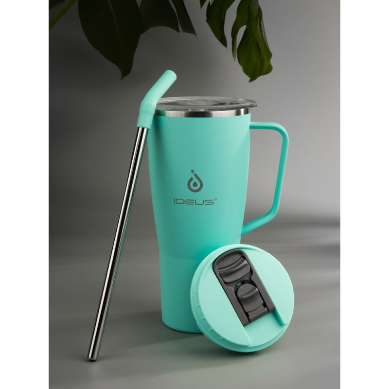 - 2 крышки в комплекте: одна на 100% герметичная с механизмом блокировки отверстия для питья, вторая — с отверстием для трубочки