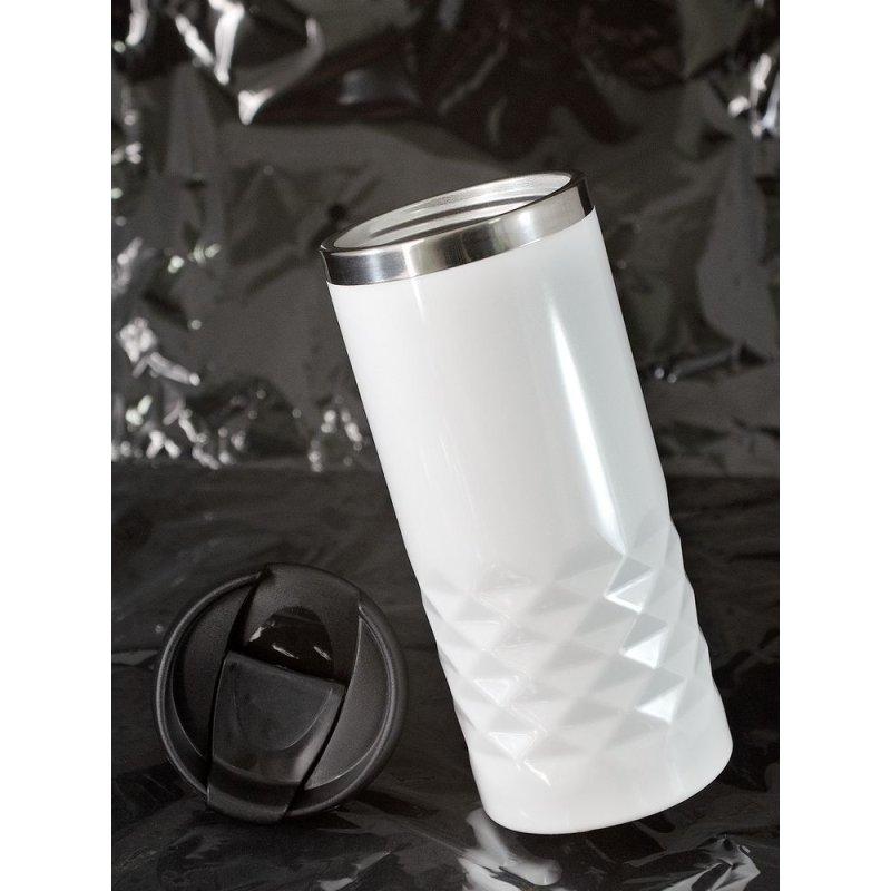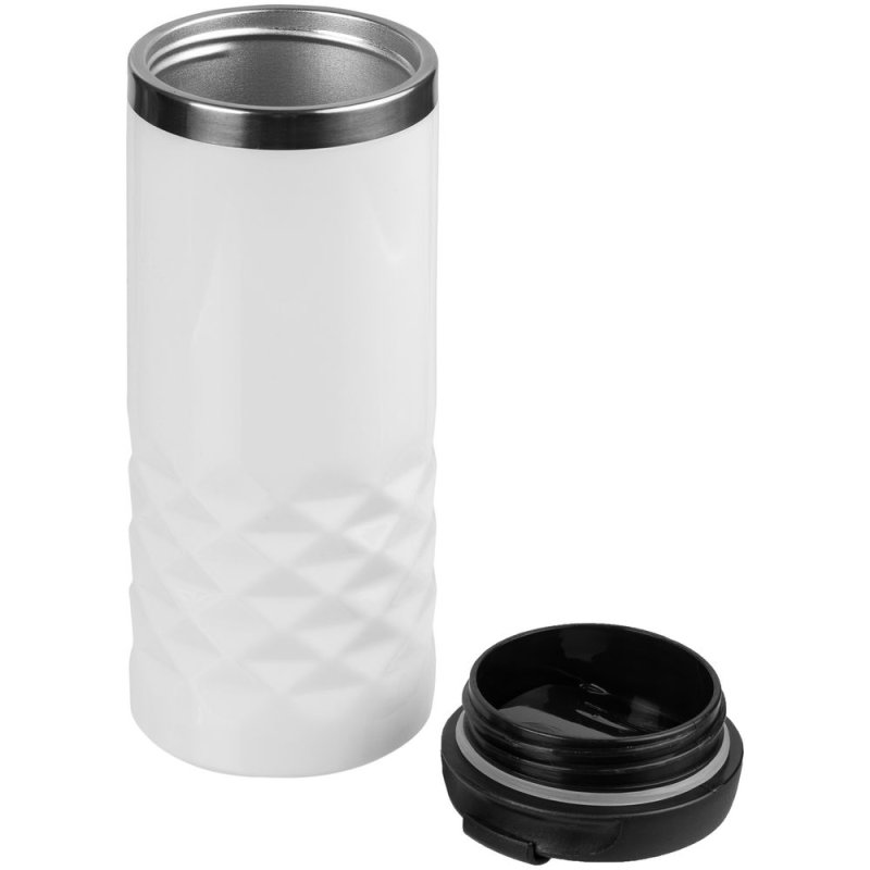 Двухслойная конструкция из пластика снаружи и пищевой нержавеющей стали внутри. Герметичная завинчивающаяся крышка с откидным клапаном для питья.