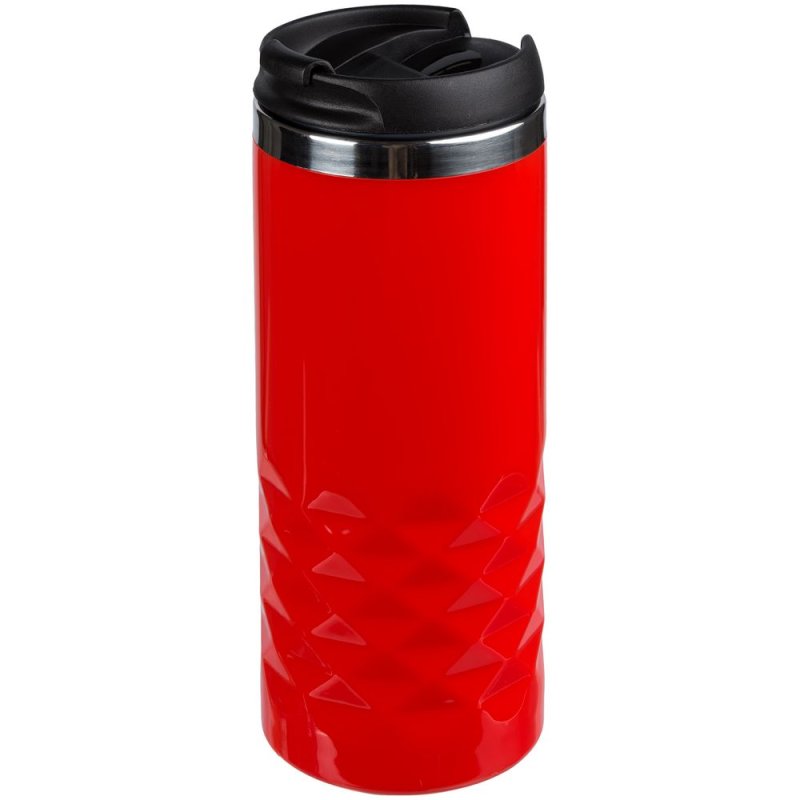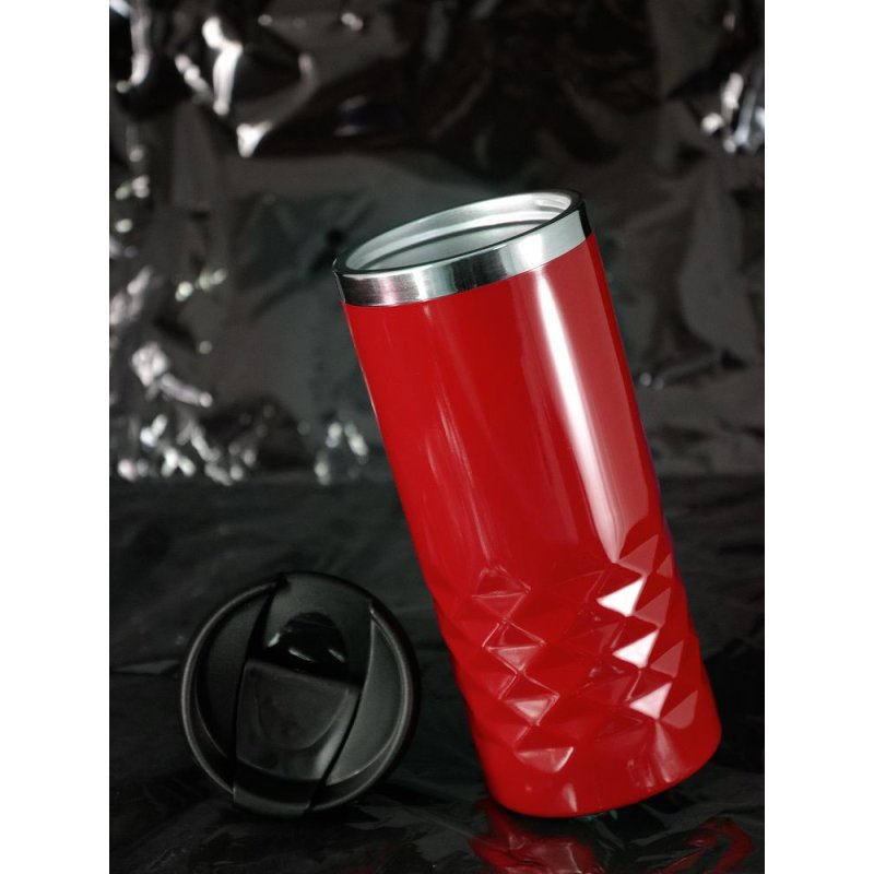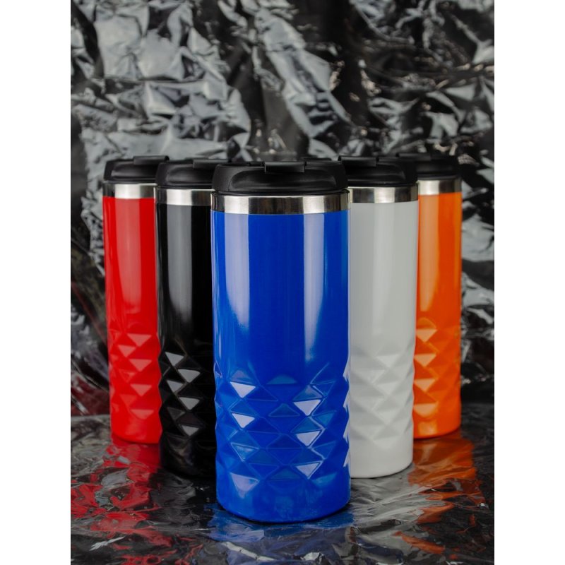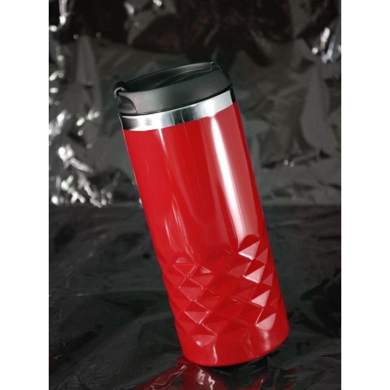 Покрытие кружки напоминает глянцевую эмаль — и рельеф на поверхности корпуса дополнительно подчеркивается яркими бликами.