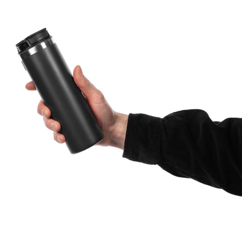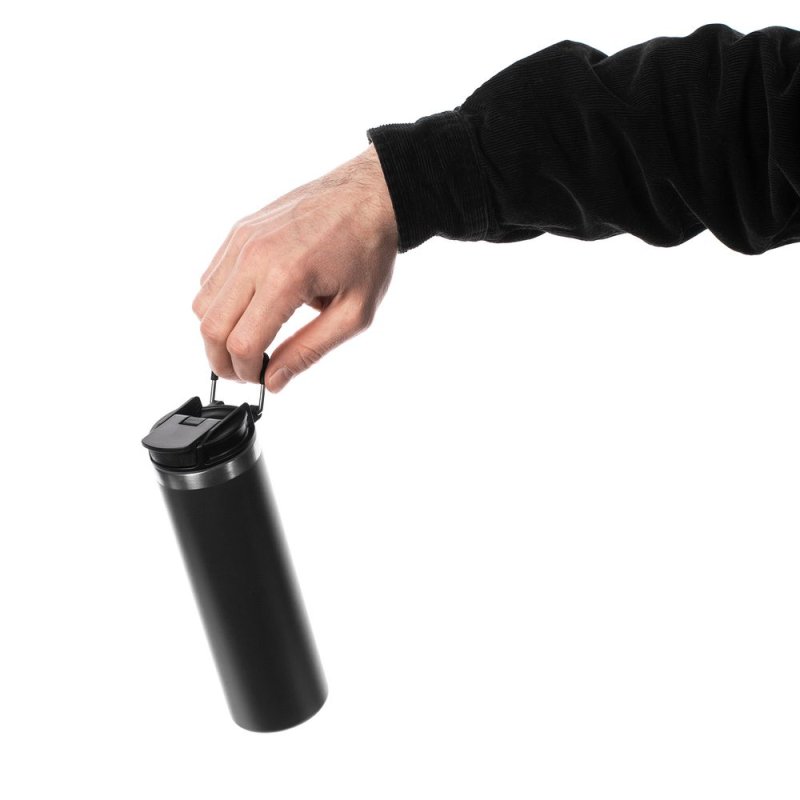 Лаконичный дизайн с ровным циллиндрическим корпусом (специально для круговой печати и гравировки), достаточный объем и привлекательная деталь в виде подвижной квадратной ручки для переноски.