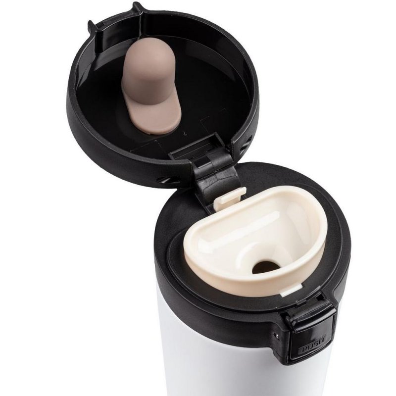 Двухслойная вакуумная конструкция из нержавеющей стали внутри и снаружи. Герметичная откидная крышка-клапан с ситечком.