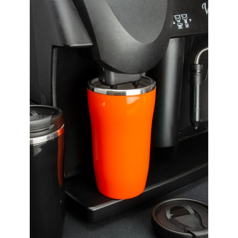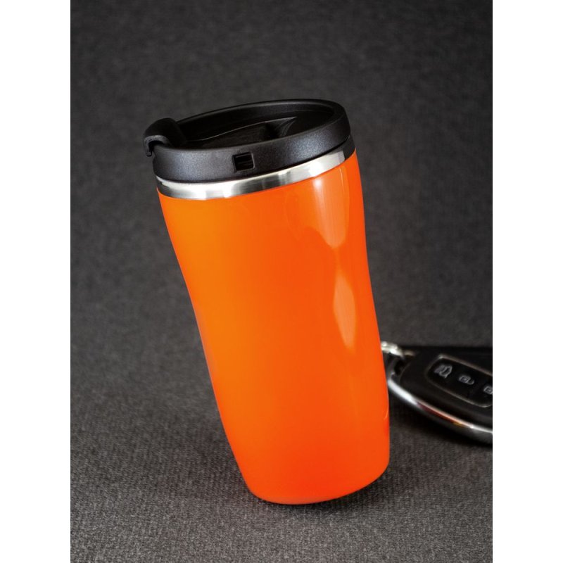 Двухслойная конструкция из пластика снаружи и пищевой нержавеющей стали внутри. Герметичная завинчивающаяся крышка с откидным клапаном для питья. В отверстие в крышке можно вставить шнурок для удобного ношения стакана на руке. Шнурок в комплект не входит.