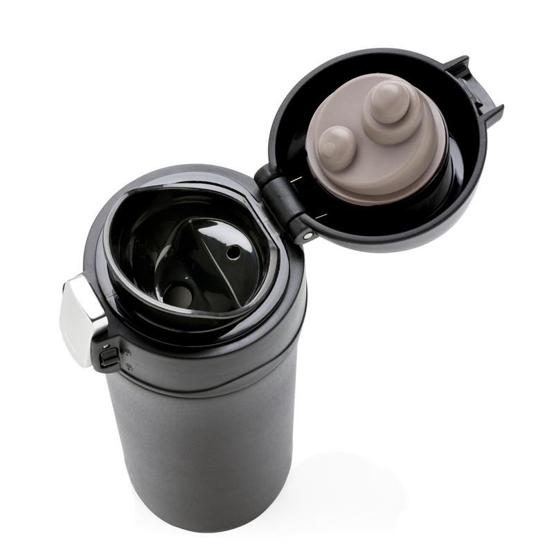 Коллекция Swiss Peak Elite с вакуумной изоляцией и двойными стенками из нержавеющей стали 18/8. Долговечное внешнее покрытие черного цвета, которое не облезет и не потрескается. Внутренние стенки термокружки покрыты медью, что обеспечивает максимальную проводимость для того, чтобы напитки сохраняли тепло до 8 часов или оставались холодными до 24 часов! Крышка с защитой от протекания, ручная мойка. Объем 300 мл.