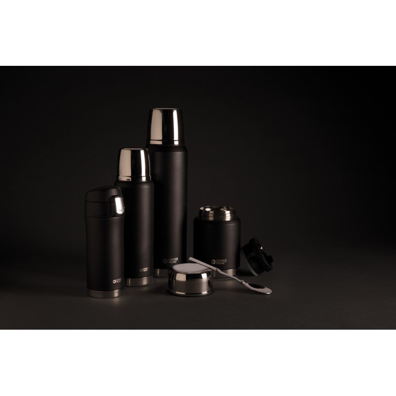 Коллекция Swiss Peak Elite с вакуумной изоляцией и двойными стенками из нержавеющей стали 18/8. Долговечное внешнее покрытие черного цвета, которое не облезет и не потрескается. Внутренние стенки покрыты медью, что обеспечивает максимальную проводимость для того, чтобы напитки сохраняли тепло до 8 часов или оставались холодными до 24 часов! Ручная мойка, защита от протекания. Объем 1000мл.