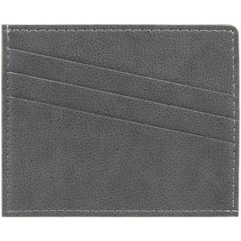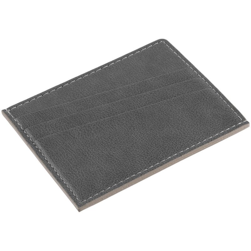 Чехол выполнен из материала Petrus, серый СС, дополнен окрашенным срезом края и внутренним карманом из серого картона. Имеет 4 отделения для кредитных карт и 1 отделение для купюр.
