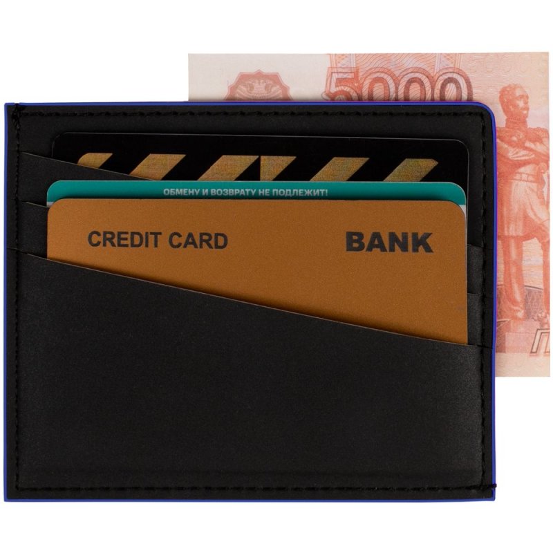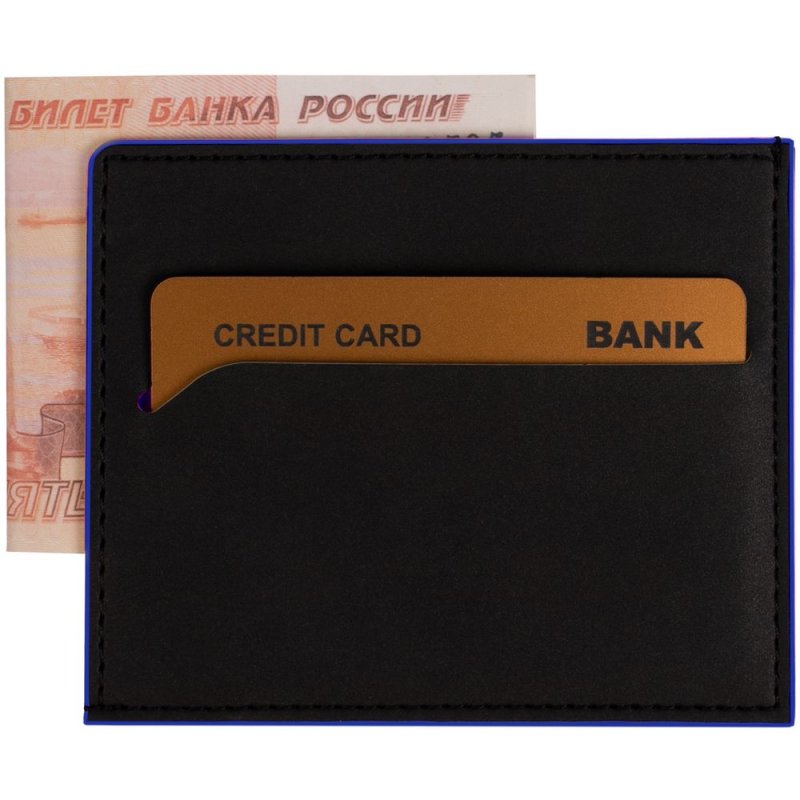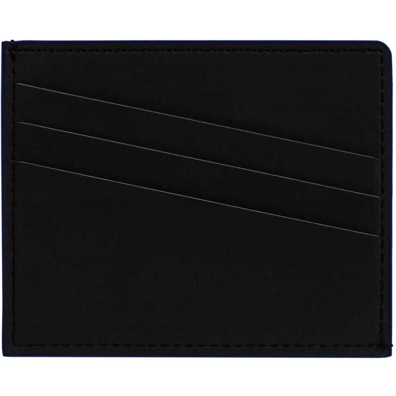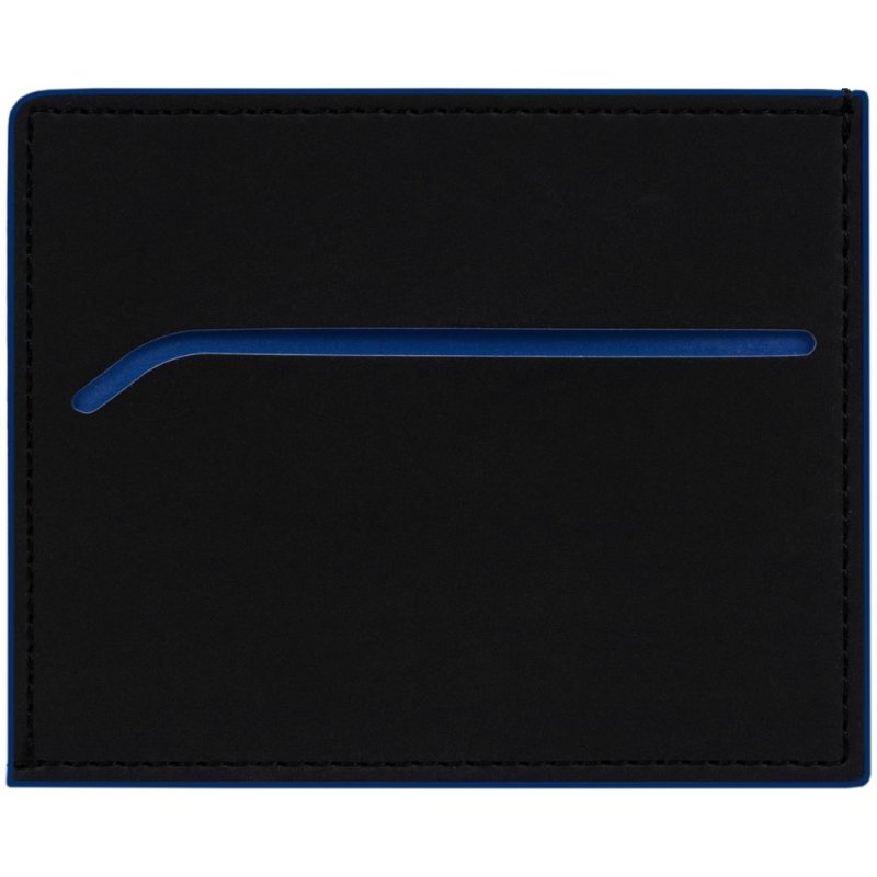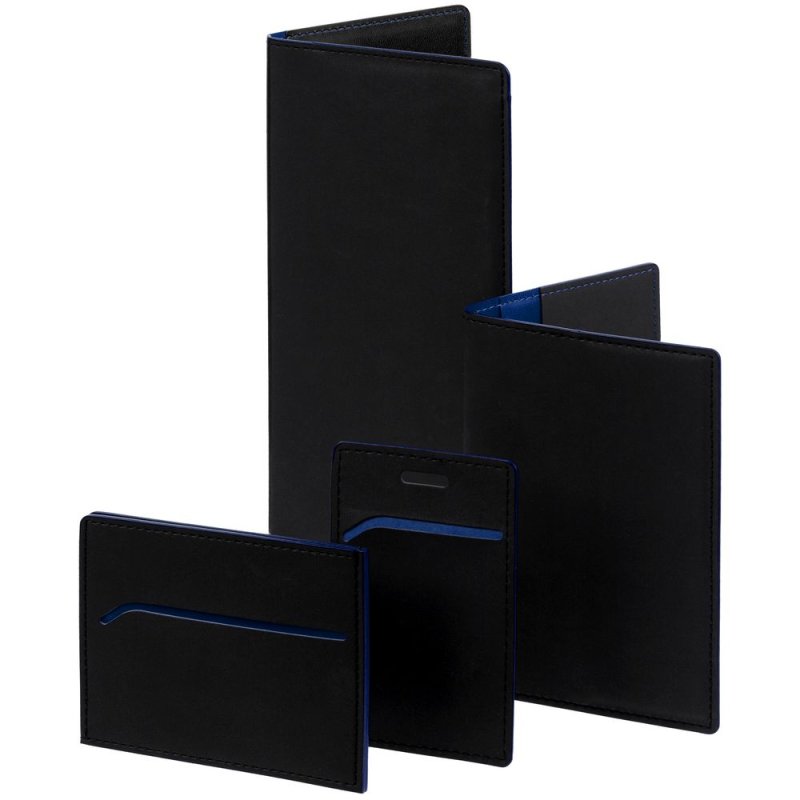 Чехол выполнен из материала Soft Touch Pearl, черный АА, дополнен окрашенным срезом края и цветным внутренним карманом из материала Latte, синий НН.