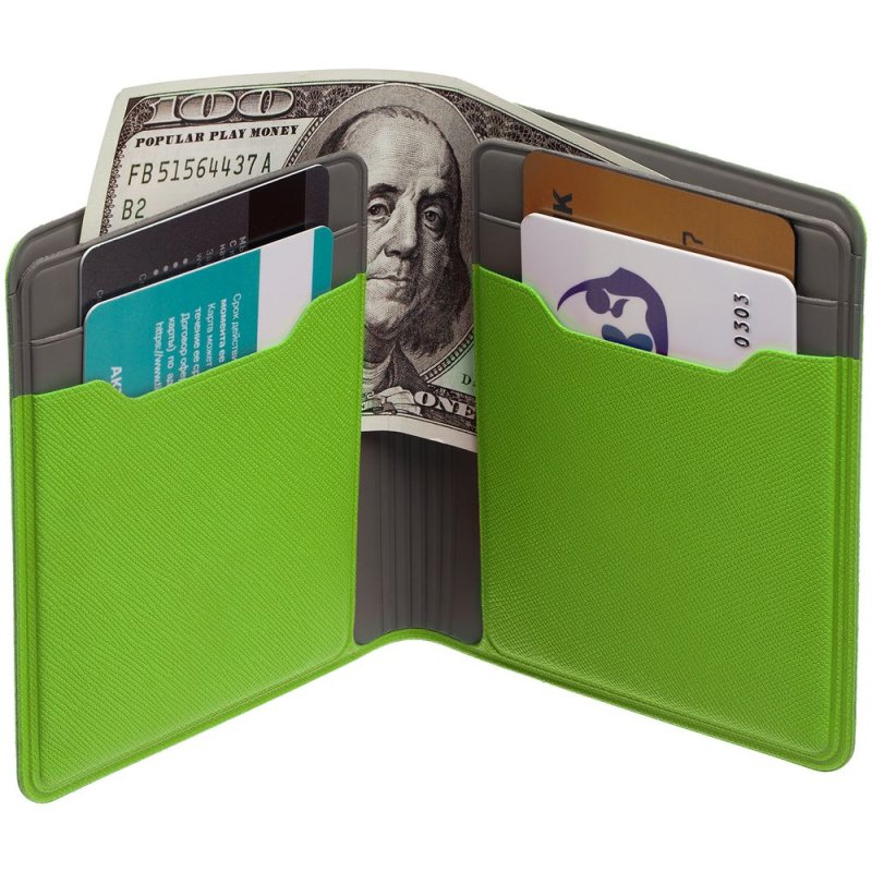 Картхолдер с 4 карманами для карточек и отделением для купюр.