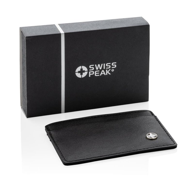 Стильный бумажник Swiss Peak из искусственной кожи (PU) с тремя отделениями для карт. Вмещает в себя до 8 карт. Среднее отделение для купюр и монет. Абсолютная защита от считывания персональных данных (RFID / NFC).
