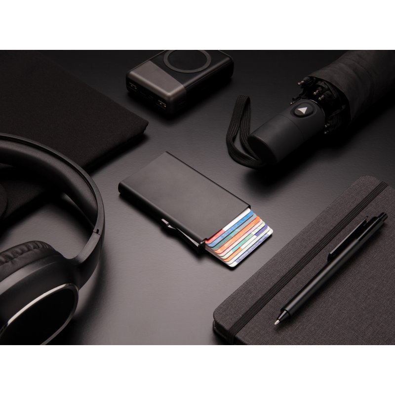 Этот прочный алюминиевый картхолдер — прекрасный способ защитить ваши персональные данные: кредитные карты, водительские права, дебетовые карты и другие. Вмещает до 6 эмбоссированных или до 7 плоских карт. Легко доставать карты при помощи бокового слайдера.