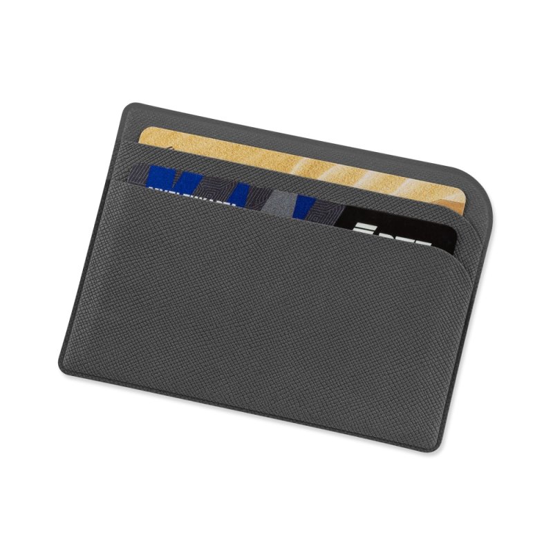 Футляр для кредитных карт с тремя карманами надежно защищает лицевую и оборотную часть карты.