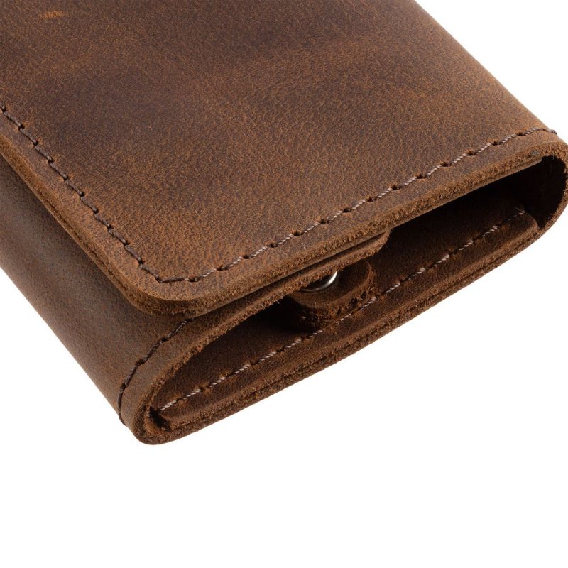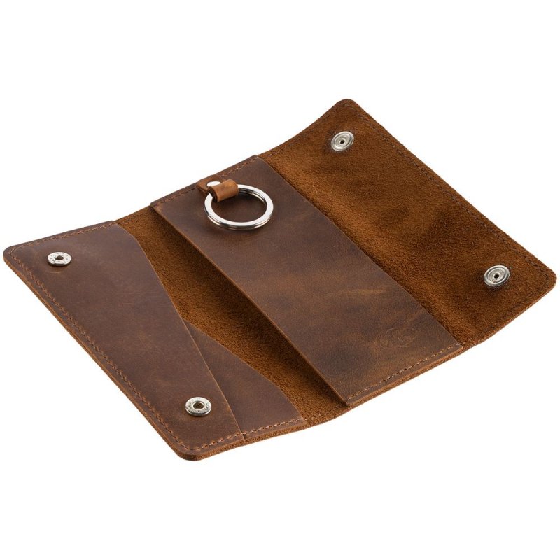 Ключница из натуральной кожи выглядит стильно, не дает ключам потеряться в недрах сумки и защищает ее содержимое от сколов и царапин. Внутри кольцо для крепления ключей длиной до 12 см. Застегивается на кнопки.