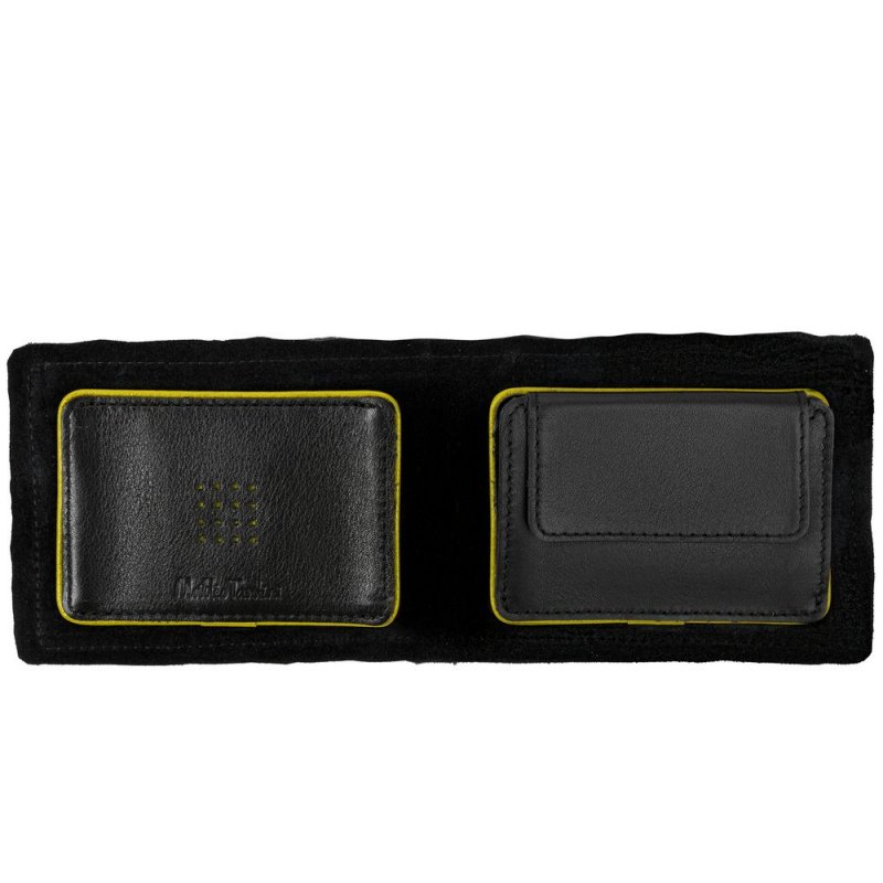 Натуральная кожа глубокого черного цвета и яркая контрастная окантовка — как страстная южная натура, сдержанная рамками условных приличий.
