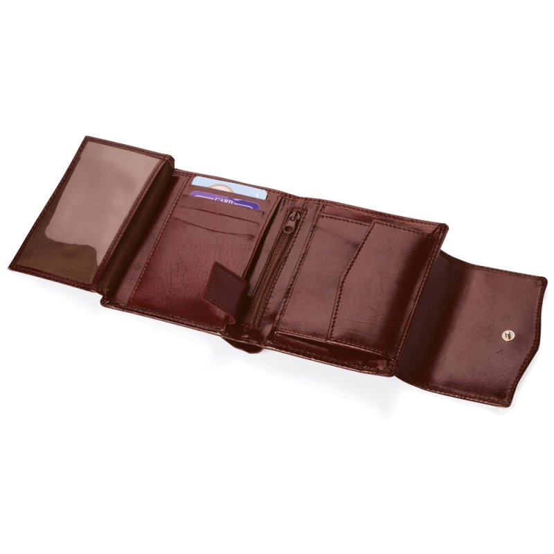 Портмоне выполнено из качественной, приятной на ощупь натуральной кожи. Внутри портмоне предусмотрены карманы для визитных и банковских карточек, а также отделение под мелочь.