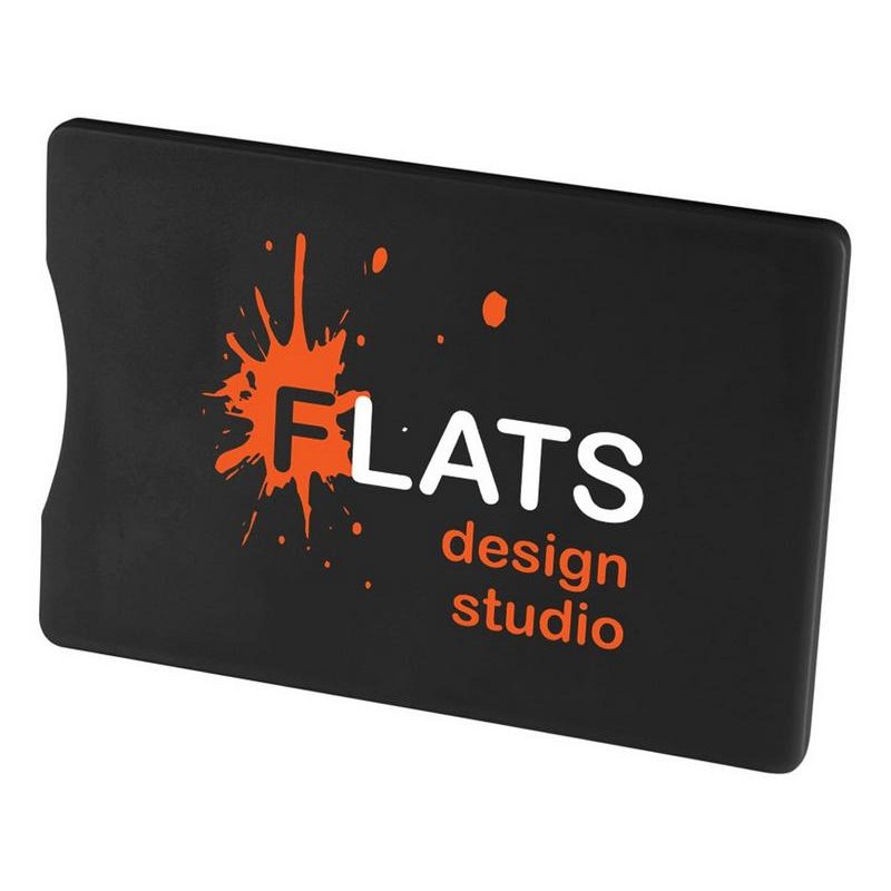 Защитный RFID чехол для кредитной карты. Благодаря RFID защите чехол надежно защитит вашу карту от несанкционированных транзакций. Чехол достаточно тонкий, так что вы можете держать его в бумажнике, сумочке или в кармане. Большое место для нанесения. Пластик.