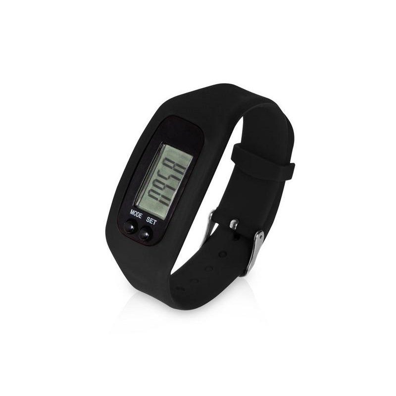 Наручные часы с возможностью отображения времени, калорий, шагов и дистанции. Есть переключение между метрической и британской системами измерений. На силиконовом ремешке можно сделать гравировку. Часы упакованы в пластиковую коробку, которую можно использовать для нанесения. Батарейка в комплекте.