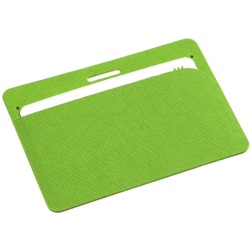 Чехол для карточки с пластиковым окошком из искусственного материала, имитирующего сафьяновую кожу.