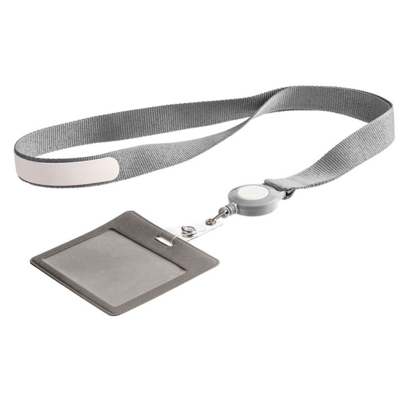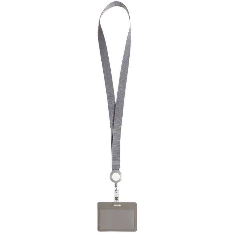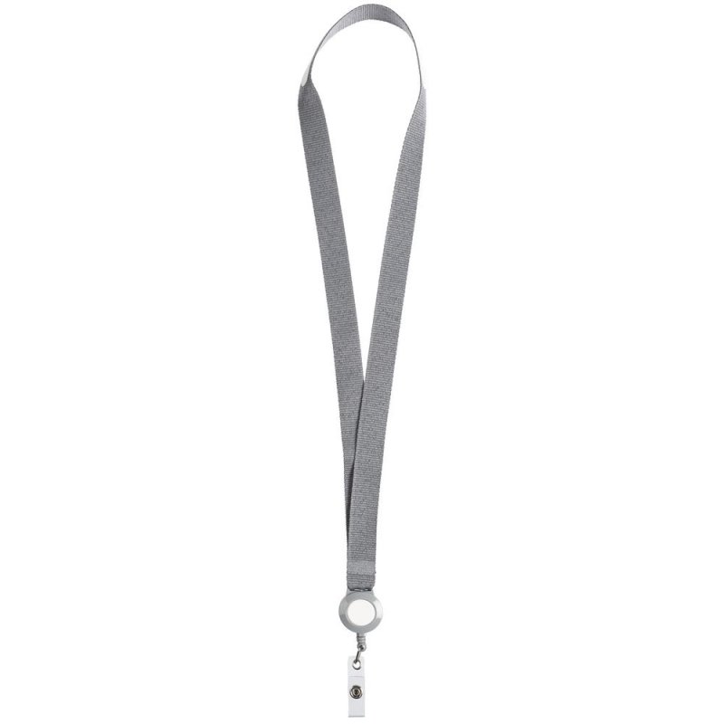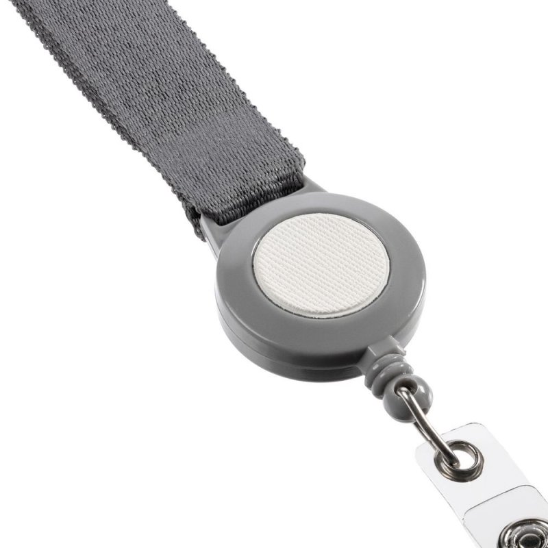 - Лента для бейджа с ретрактором Devon, серая с белым