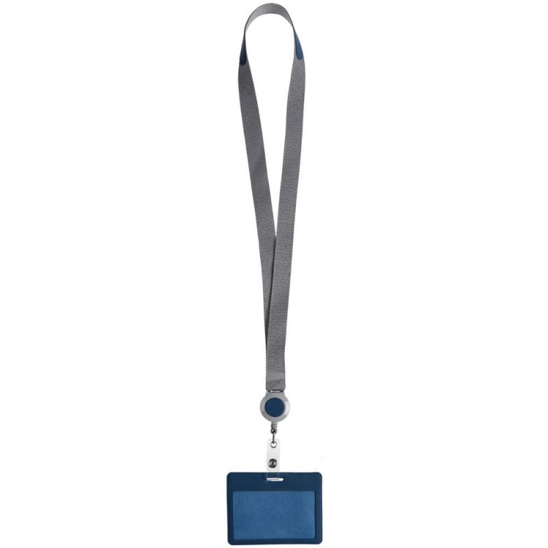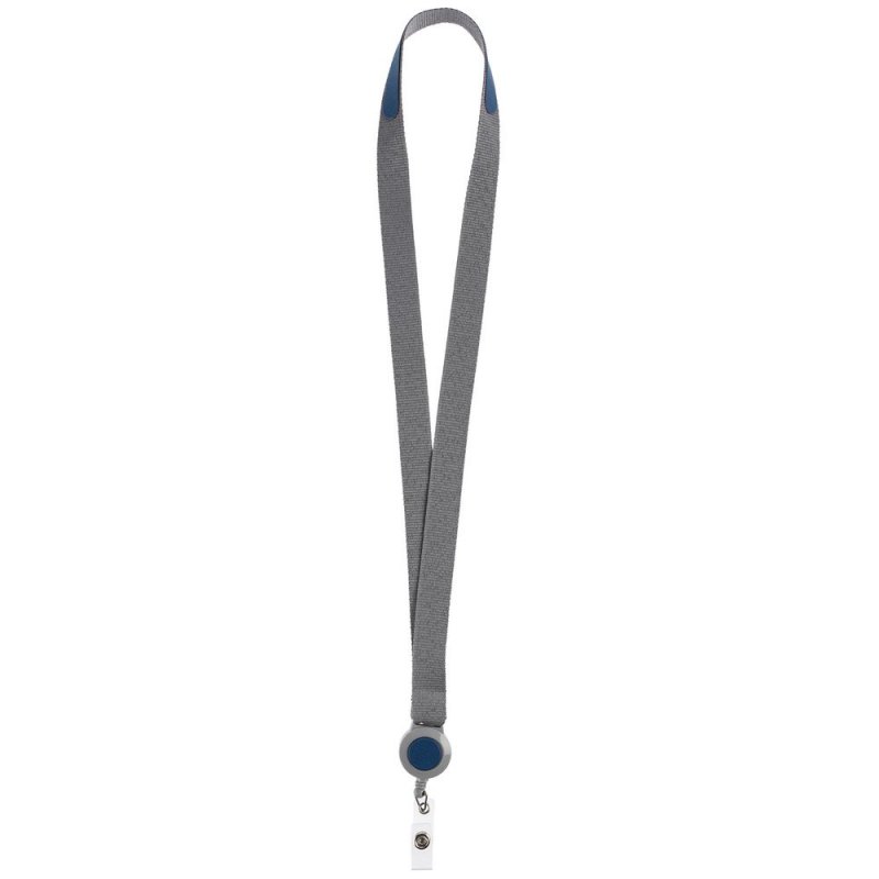 - Лента для бейджа с ретрактором Devon, серая с синим
