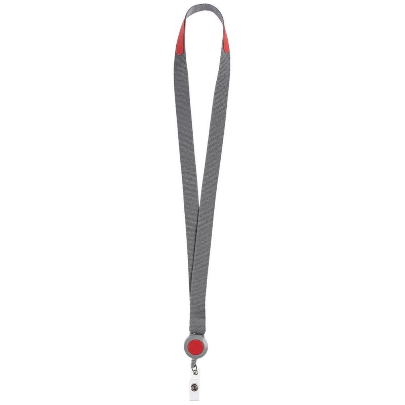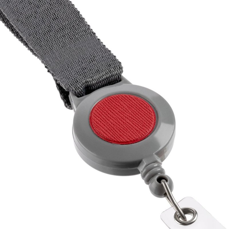 - Лента для бейджа с ретрактором Devon, серая с красным