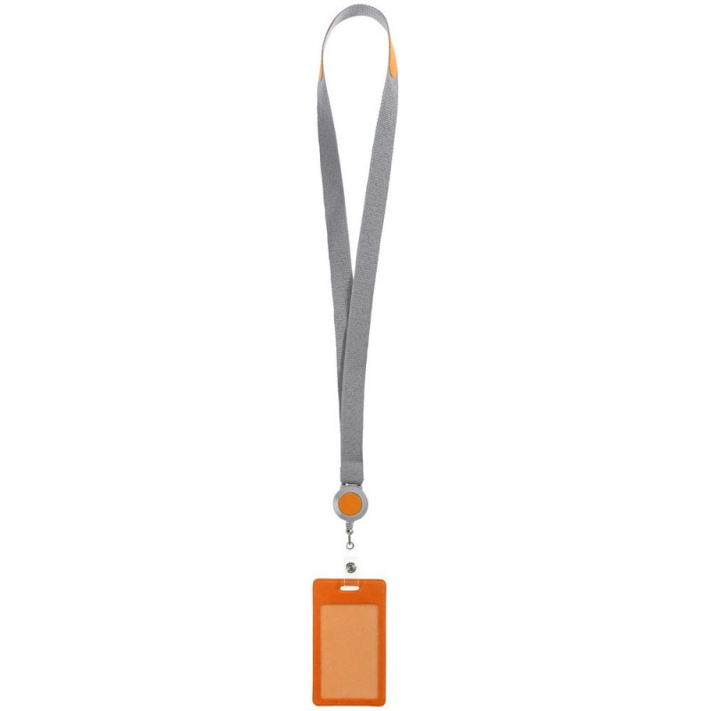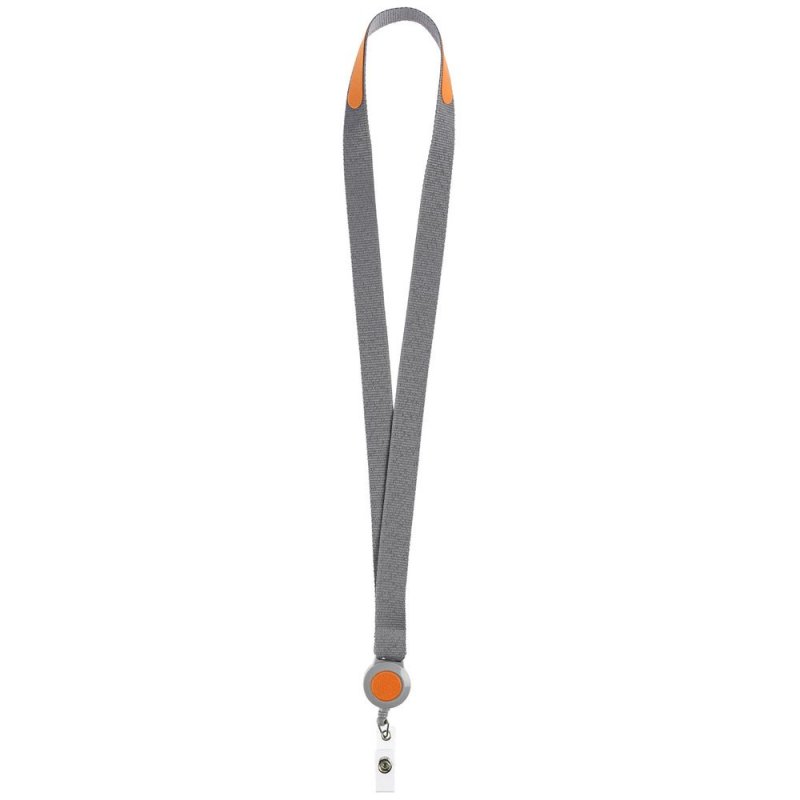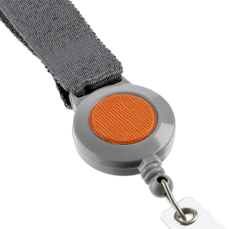 - Лента для бейджа с ретрактором Devon, серая с оранжевым,