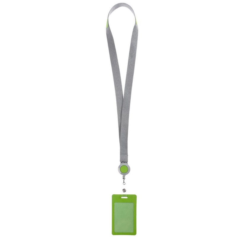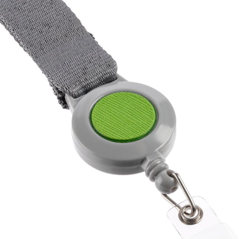 - Лента для бейджа с ретрактором Devon, серая с зеленым,