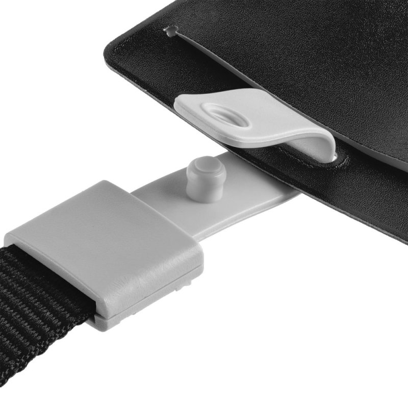 Карман для бейджа крепится к ленте с помощью пластиковой клипсы.