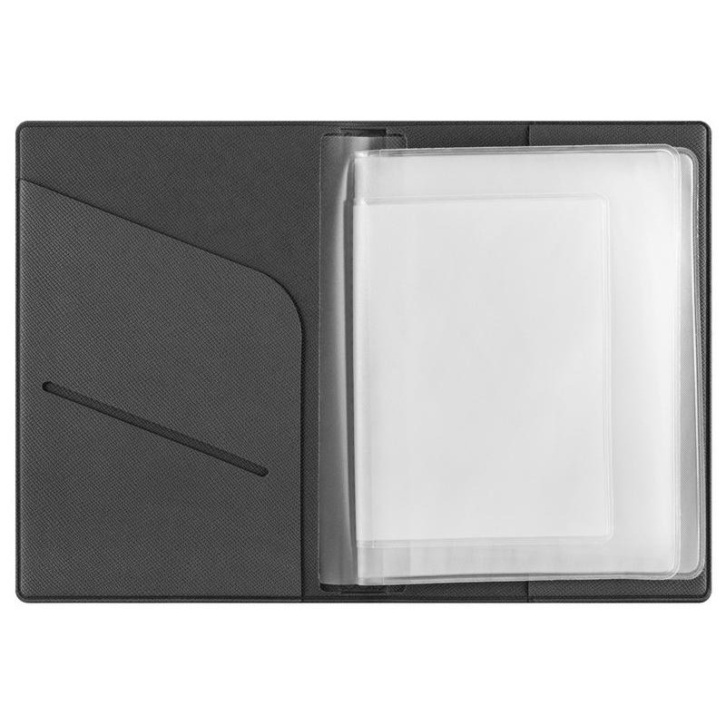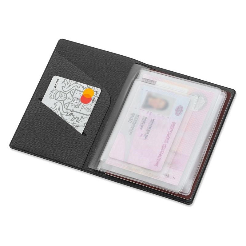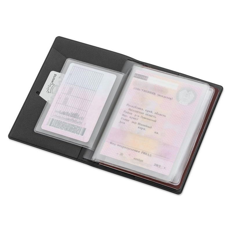 Внутренние вкладыши выполнены из пленки пвх и позволяют разместить: паспорт, свидетельство о регистрации тс, полис осаго, водительское удостоверение, также имеется кармашек для пластиковой карты.