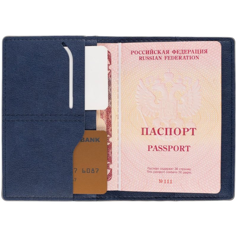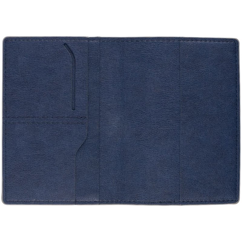 Имеет основное отделение для паспорта и 2 кармана для визиток или кредитных карт.