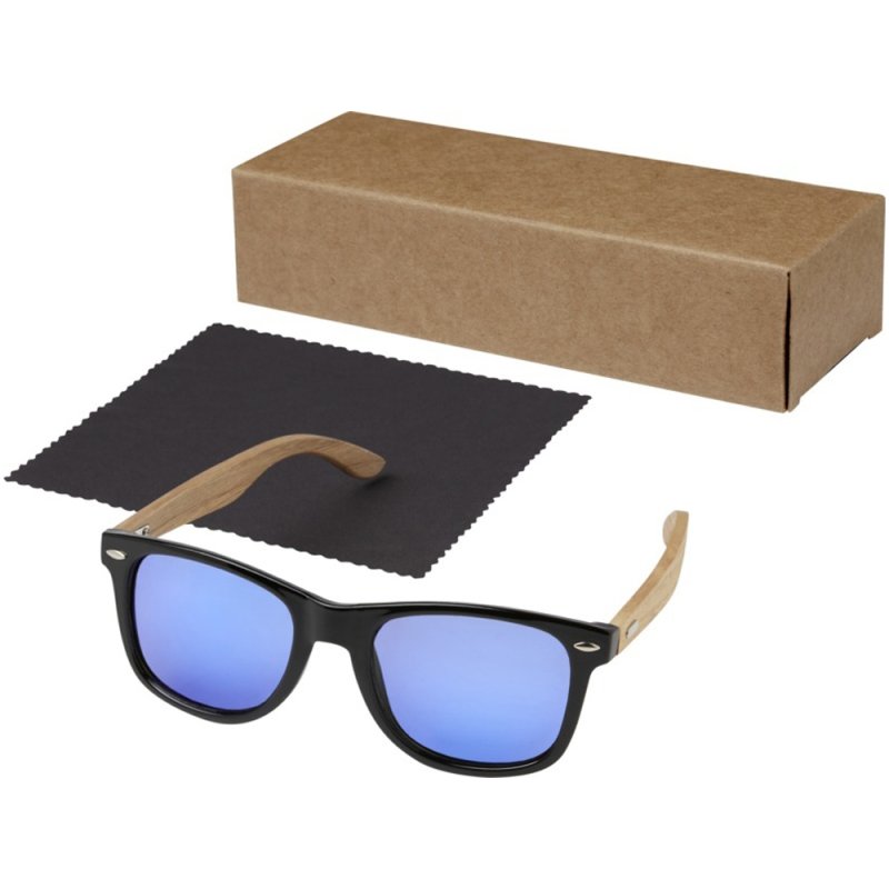 Солнцезащитные очки Hiru с оправой из переработанного PET-пластика/бамбука изготовлены из экологически чистых материалов с соблюдением самых высоких стандартов качества. Высококлассная отполированная и окрашенная оправа изготовлена из переработанного PET-пластика. Невесомые дужки с удобной посадкой изготовлены из древесины дуба, полученной из устойчивых, экологически и социально ответственных источников. Линзы имеют синее зеркальное покрытие и поляризацию, что исключает отражение солнечного света и делает эти очки идеальным вариантом для вождения автомобиля или активных занятий на свежем воздухе в зимнее или летнее время. Эти очки соответствуют требованиям стандарта EN ISO 12312-1, имеют линзы со степенью защиты UV400, которые относятся к категории 3. Поставляются с салфеткой из переработанного PET-пластика (15 x 15 см) и упакованы в подарочную коробку из переработанного картона (16,5 x 6 x 4 см). В качестве экологически чистого варианта декорирования рекомендуется лазерная гравировка.