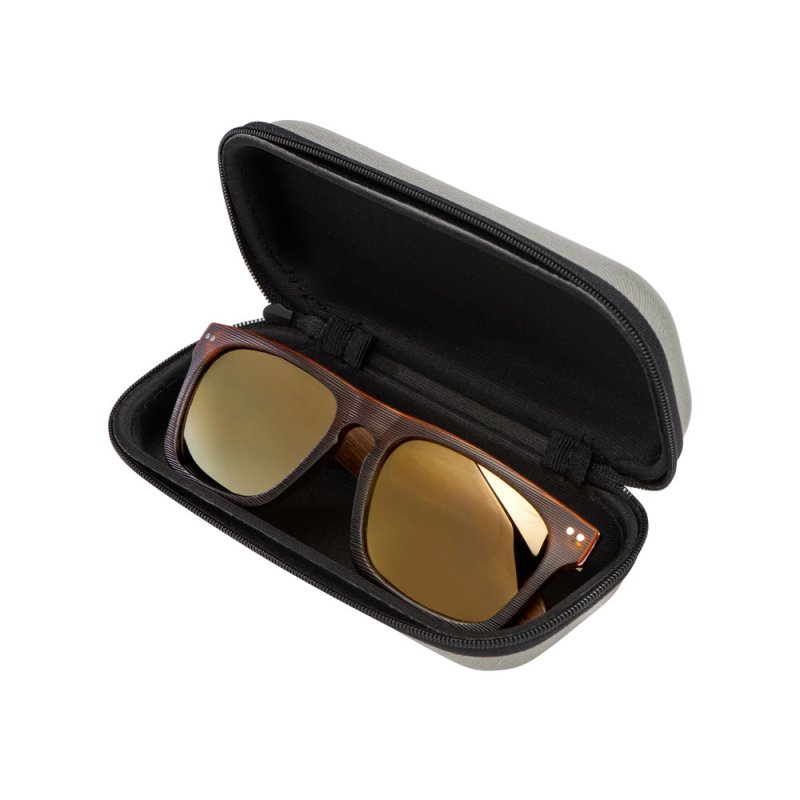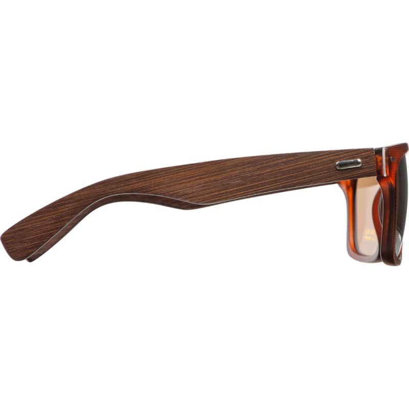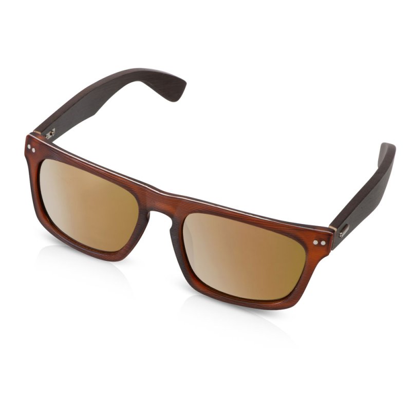 Корпус солнцезащитных очков полностью изготовлен с применением экологически чистого материала-бамбука, окрашенного в темно-коричневый цвет. Зеркальные линзы в тон оправе дополняют ее и придают очкам более стильный вид. Прочная конструкция креплений. 100% Защита от вредного УФ-излучения (UV 400). Поставляются в качественном футляре из неопрена.