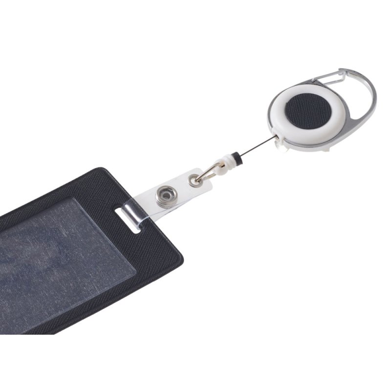 Прочный чехол для пропуска из экокожи с ретрактором. Ретрактор можно удобно закрепить на одежде, за ремень или карман брюк, например. При этом, когда пропуск нужно приложить к электронному считывающему устройству, достаточно просто слегка потянуть и будет получена необходимая длина.
