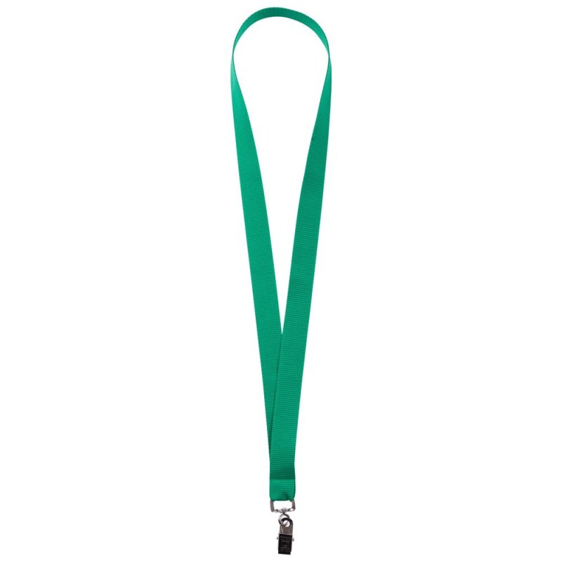 Бейдж крепится к ленте с помощью металлической клипсы.