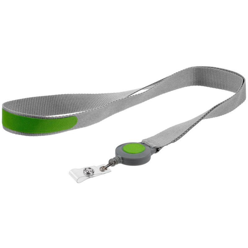 Лента из плотного нейлона со вставками из искусственной кожи с ретрактором для бейджа.