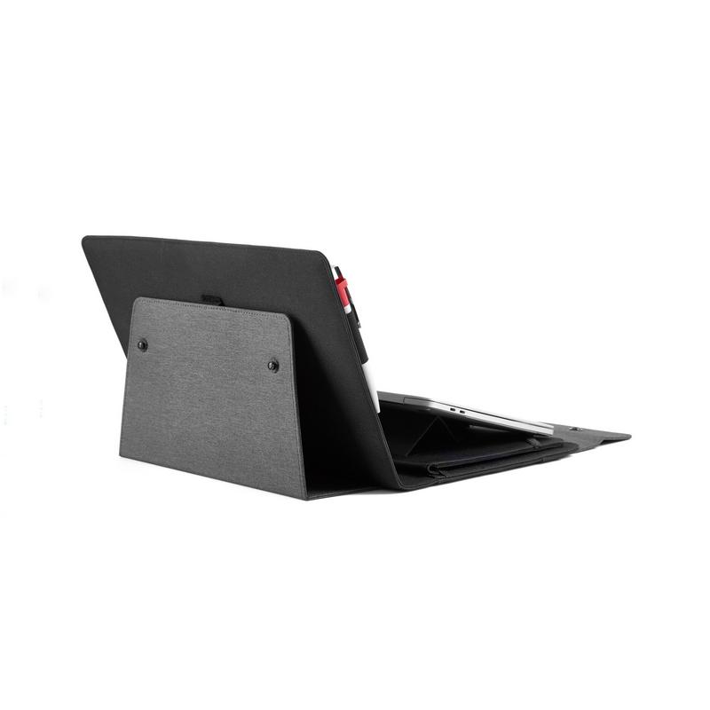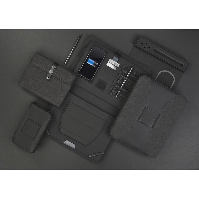 Папка 7429-4/3 оптимально подходит для планшетов и тонких ноутбуков (без CD-привода) с диагональю экрана до 15,6 дюймов. В мобильном офисе есть все необходимое для комфортной работы. Папка в разложенном виде образует горизонтальную площадку под ноутбук, см. дополнительное фото. Для мобильных устройств доступно 2 вида зарядки: беспроводная (Qi-технология) и стандартная - проводом от USB-разъема. Простое и удобное крепление на выдвижную ручку чемодана будет незаменимо в поездках. В закладке файлы есть видео с наглядной демонстрацией функционала мобильного офиса.