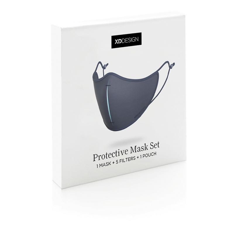 Комфортная защитная маска XD DESIGN для ежедневного использования. Легкая трехслойная конструкция. Внешняя ткань — полиэстер, обработанный по технологии ViralOff®, уничтожающей до 99% вирусов в течение 2 часов. Средний слой — уникальный фильтр Hyproof® с доказанной эффективностью фильтрации до 95%. Внутренний слой сделан из полиэстера. Трехмерная форма подбородка и гибкая переносица для комфортного использования. Состав сета: 1 многоразовая маска, которую можно стирать; 5 многоразовых фильтров; чехол для гигиеничного хранения маски и сменных фильтров. Не относится к товарам медицинского назначения (согласно Постановлению EU / 2017/745 о хирургических масках) и средствам индивидуальной защиты (согласно Постановлению EU / 2016/425 о фильтрующих масках типа FFP2). Зарегистрированный дизайн®