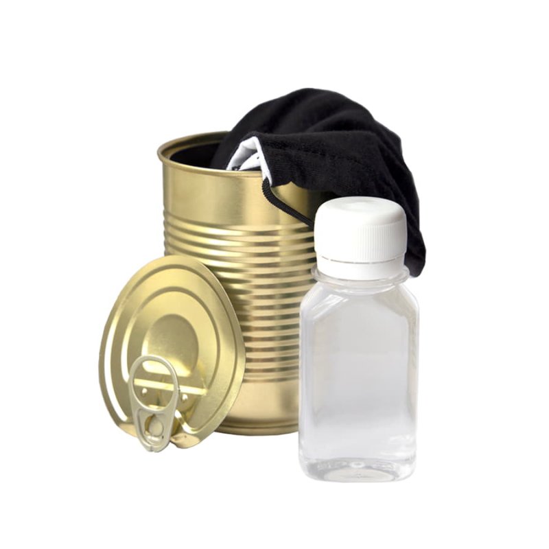 Универсальный комплект защиты на случай угроз здоровью и жизнедеятельности человека. Уникальный продукт! Жестяная запечатанная банка, в которой находятся самые нужные для защиты изделия. Все герметично запечатано и может храниться годами! А значит актуальность подарка будет сохраняться всегда.Набор №2 состоит из следующих компонетнтов:1)Защитная х б маска многоразового пользования. Сшита качественно и добротно из 2 слоев ткани. Имеет самозатягивающиеся резинки для крепления за ушии шов посередине, который повторяет форму лица для более качественной фиксации и защиты. На маску возможно нанесение в 1 цвет. Цвет маски - серый 2) Антисептическая жидкость на основе этанола, массовой долей 75%. Предназначен для уничтожения вирусов и бактерий на поверхности рук и лица, для обеззараживания телефона и других предметов обихода. Упаковка – пластиковый пузырек емкостью 50 мл с крышкой.Нанесение на флакон -цветная наклейка.3) Нитриловые перчатки для защиты рук от попадания на них вирусов и бактерий. Цвет перчаток - белый Стандарный готовый набор поставляется со склада в запечатанном виде, без нанесения на компонентах и без этикетки. Для готовых комплектов, поставляемых со складаможно заказать полиграфическую этикетку для банки, нанесение на ингредиентах в этом случае невозможно. Для заказа комплектов с нанесением на ингредиенты (маска, флакон с антисептической жидкостью) просьба обращаться к мнеджерам продаж. В этом случаае компоненты набора предварительноперсонализируются, после чего происходит закатка банки и оклейка этикеткой.