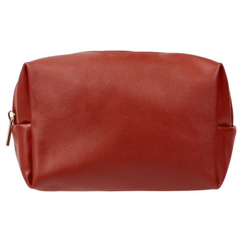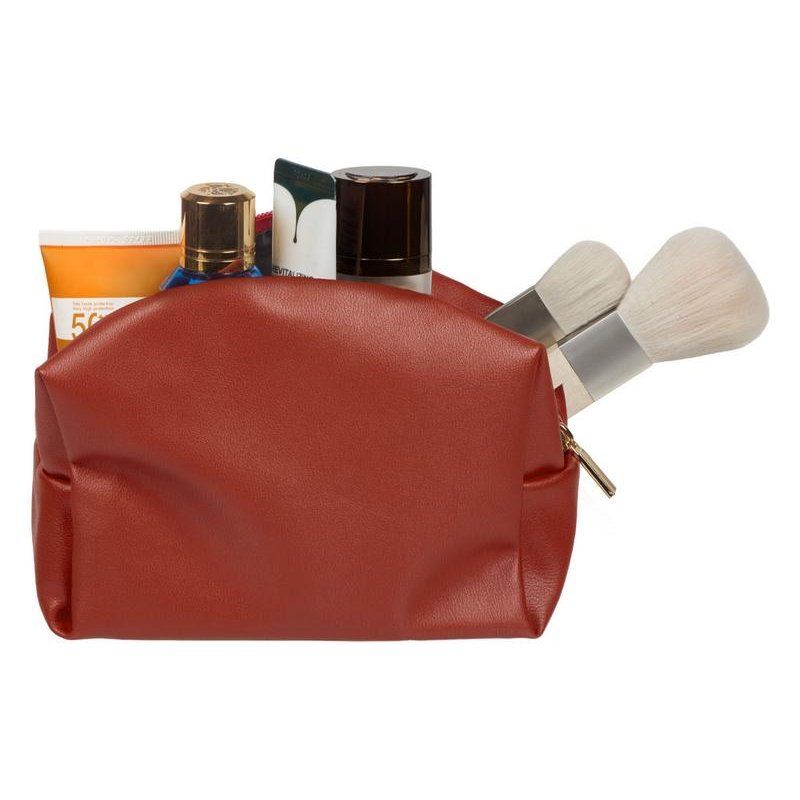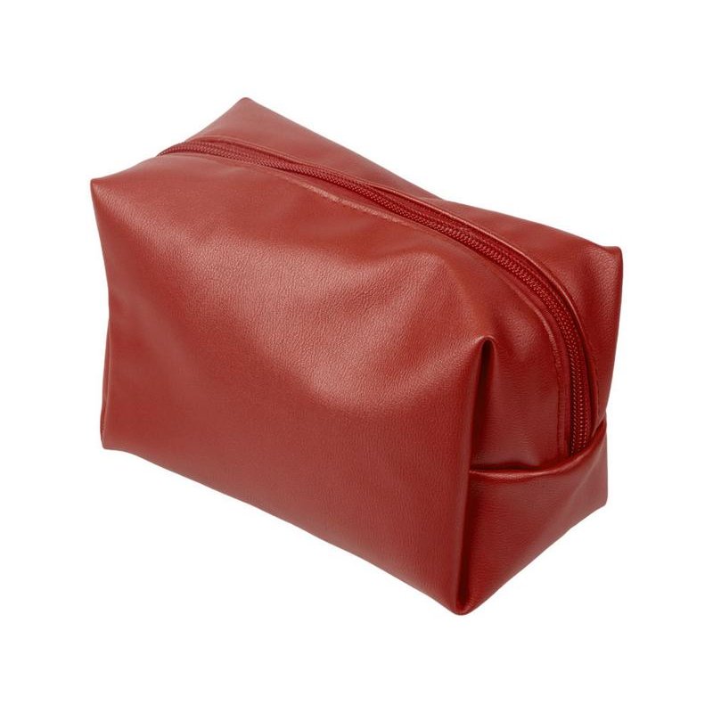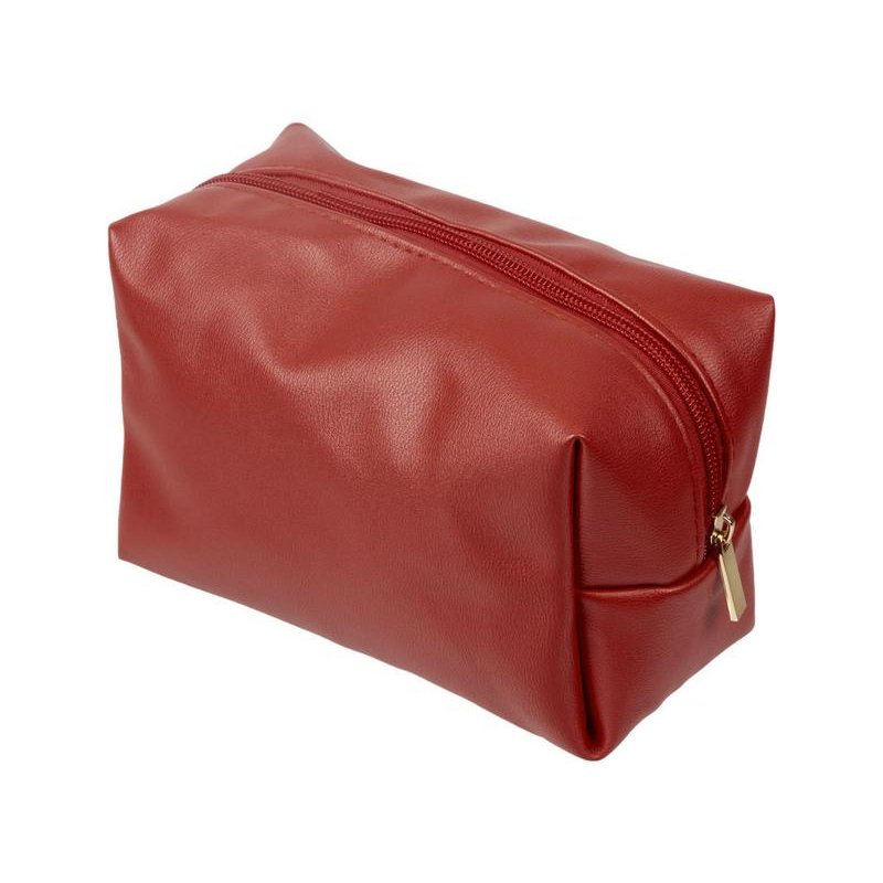 Косметичка из искусственной кожи удобной и вместительной формы. Внутри подклад серого цвета с карманом для маленьких предметов.