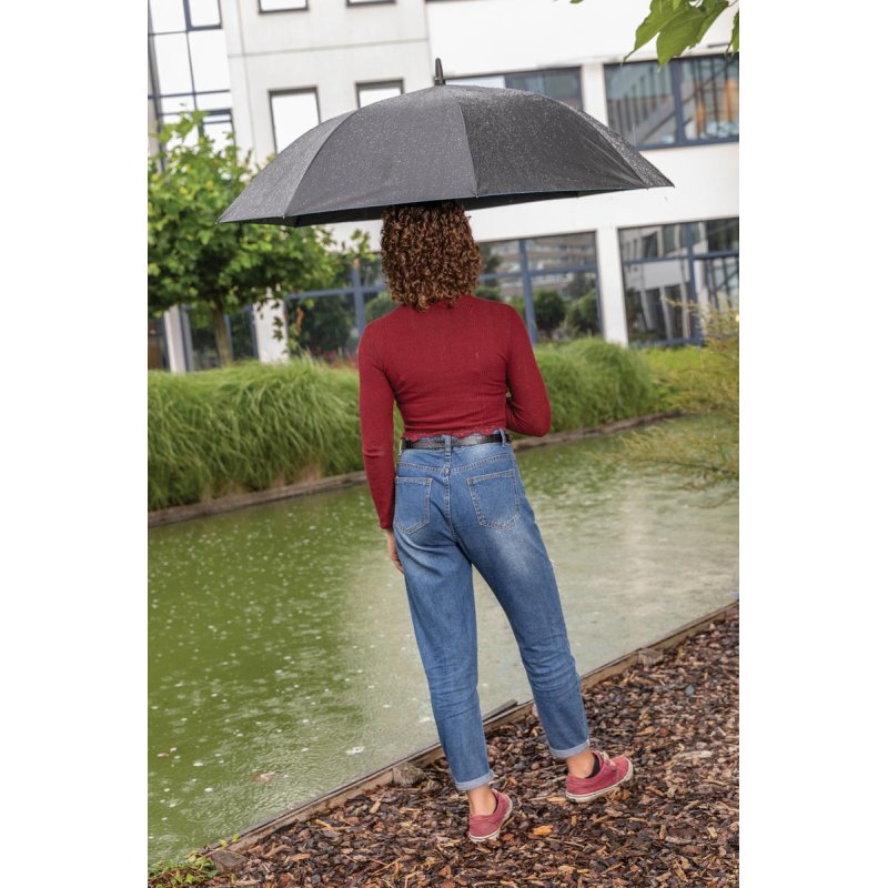 Никакого гринвошинга, только по-настоящему экологичное производство! Коллекция Impact сделана с добавлением индикатора AWARE™, наличие которого гарантирует, что в изделиях использованы подлинные переработанные материалы, а в процессе производства особое внимание уделялось экономии воды. 2% с продаж коллекции мы перечисляем в поддержку всемирной организации Water.org. Этот большой зонт с автоматическим открыванием защитит вас от дождя даже в самую ненастную погоду. Металлический каркас, спицы из стекловолокна и ручка из PP. При производстве этого зонта мы сэкономили 6,3 л воды и переработали 10,7 пластиковых бутылок объемом 500 мл (этот показатель основан на сравнении с первичными материалом). Расчетный показатель базируется на надежных данных LCA (Life Cycle Assessment — Оценка жизненного цикла), опубликованных Textile Exchange (Textile Exchange — глобальная некоммерческая организация) в их отчете Material Snapshots 2016 (Material Snapshots 2016 — набор документов о жизненном цикле волокон и материалов).