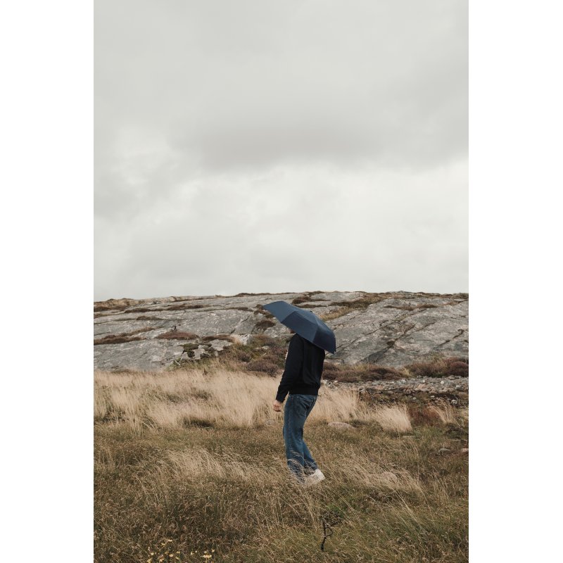 В коллекции Baltimore от VINGA пополнение: зонт-полуавтомат с функцией антишторм. Благодаря минималистичному дизайну и нейтральным цветам зонт добавит образу элегантности. Купол изготовлен из переработанных пластиковых бутылок: такой материал не промокает, он прочный и долговечный. У зонта металлический каркас, спицы из стекловолокна и ручка из ABS-пластика с резиновым покрытием для большего комфорта. Практичный и стильный зонт отлично подходит для сложных погодных условий: он не боится проливного дождя и сильного ветра. Открыть его будет легко, даже если руки заняты: потребуется лишь легкое касание кнопки. Сертифицировано AWARE™. Наличие индикаторных частиц AWARE™ подтверждает, что мы действительно используем переработанные материалы. 2% с продажи каждой вещи, отмеченной сертификатом AWARE™, мы перечисляем в поддержку всемирной организации Water.org.