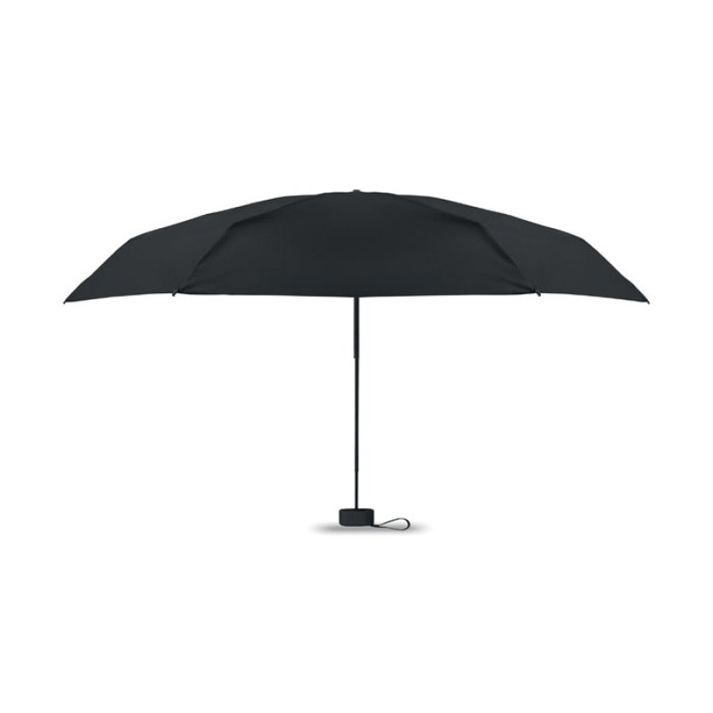 19-дюймовый складной зонт из полиэстера 190T в чехле. Ветроустойчивый каркас из металла и стекловолокна, черная прорезиненная ручка с ремешком на запястье. Компактный размер в сложенном виде 17 см.