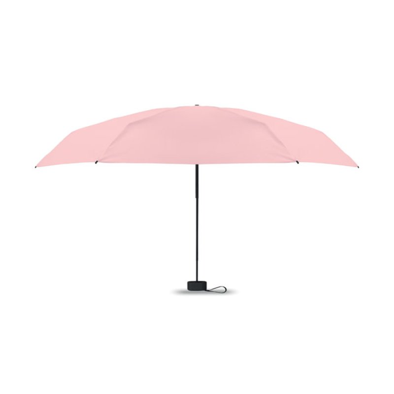 19-дюймовый складной зонт из полиэстера 190T в чехле. Ветроустойчивый каркас из металла и стекловолокна, черная прорезиненная ручка с ремешком на запястье. Компактный размер в сложенном виде 17 см.
