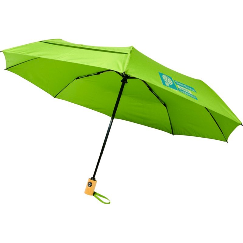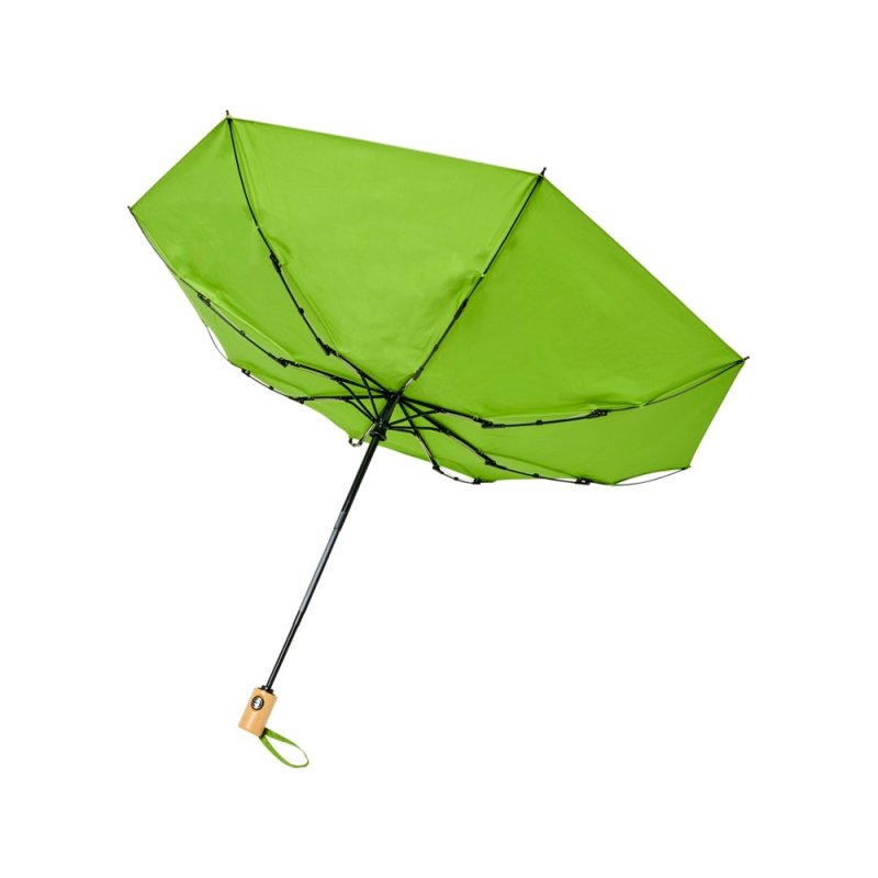 Автоматически открывающийся/закрывающийся зонт Bo из переработанного ПЭТ-пластика. Куполом из эпонж полиэстера и переработанного ПЭТ-пластика. Прочный металлический стержень, высококачественная рама со спицами из стекловолокна, обеспечивающая максимальную гибкость в ветреную погоду. Поставляется с чехлом и может легко поместиться в сумку или рюкзак для удобного ношения.