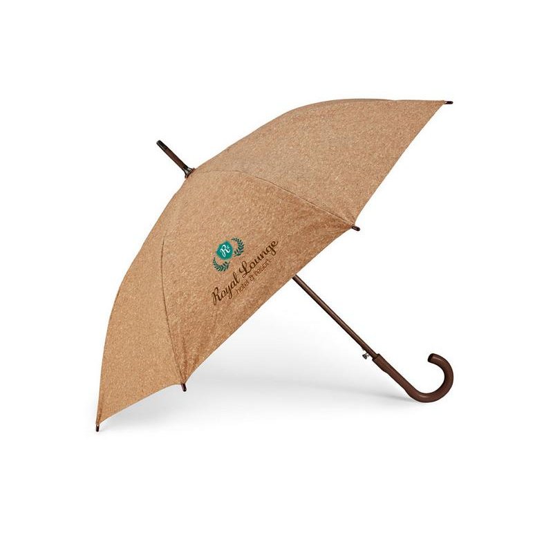 Полуавтоматический зонт-трость из натуральной пробки с деревянной ручкой.