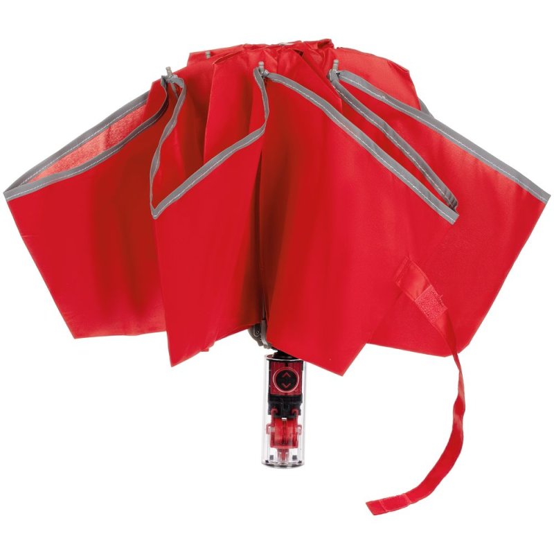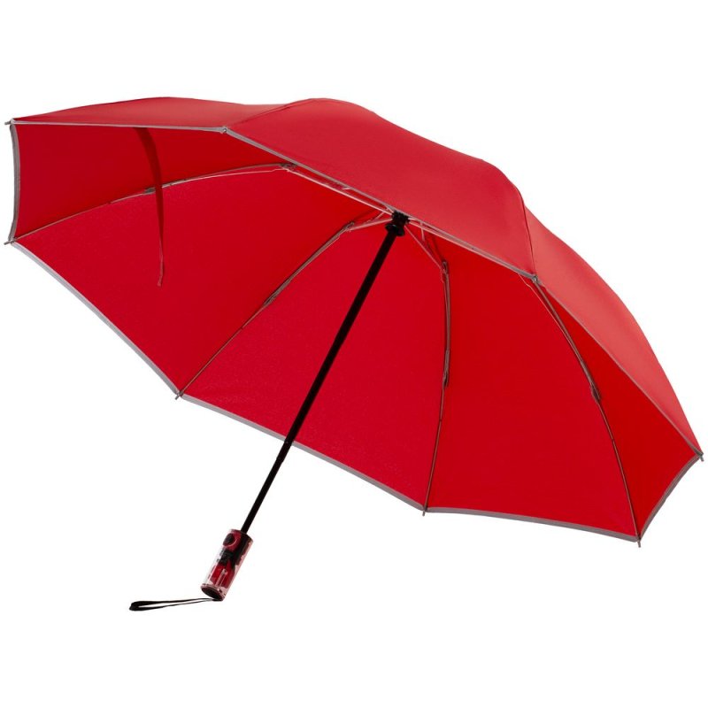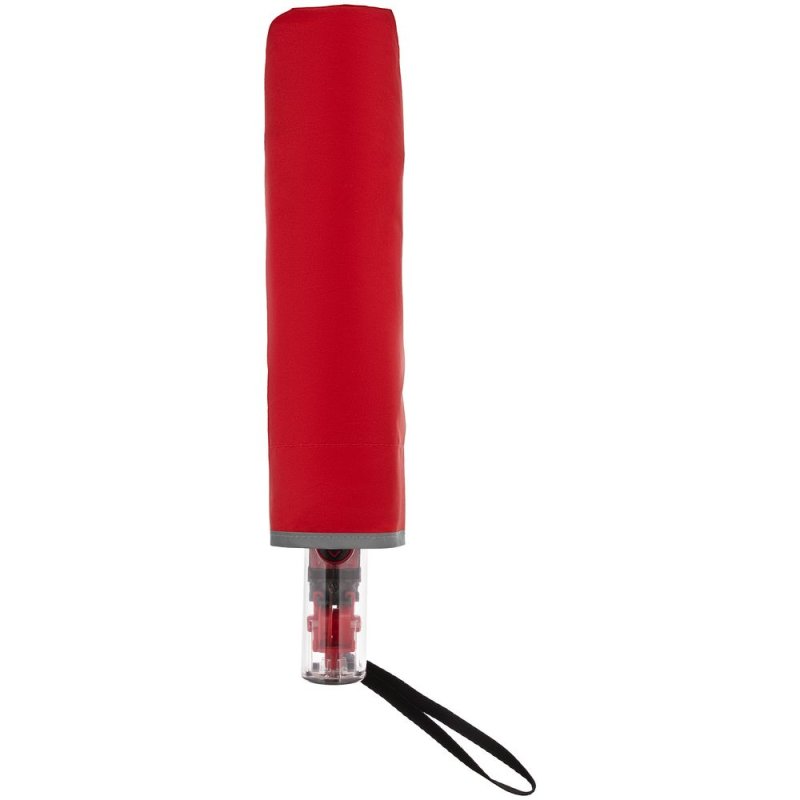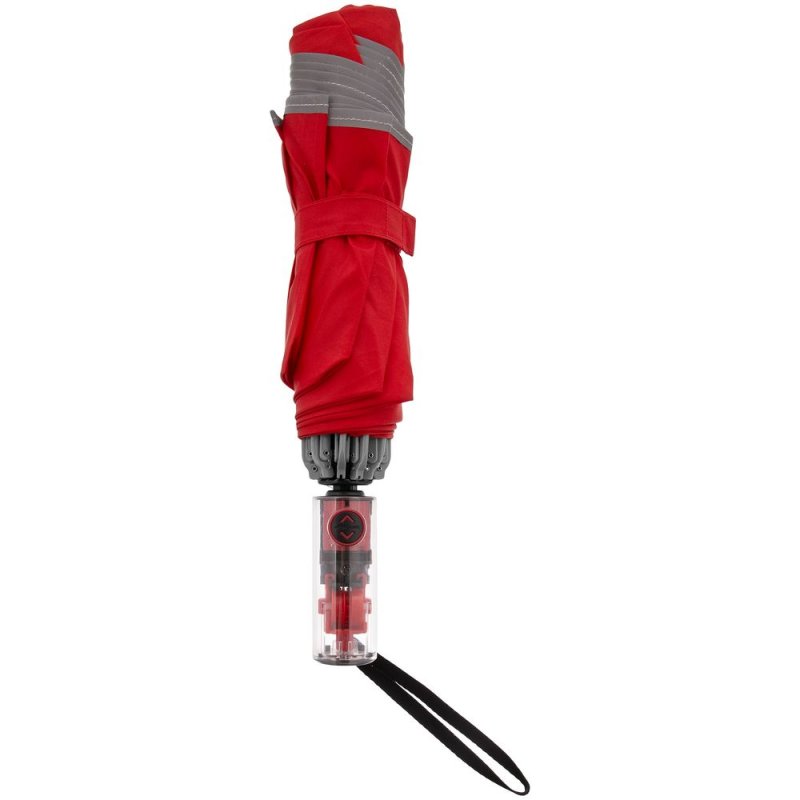 Складной зонт Futurum привлекает внимание оригинальным дизайном. Светоотражающий кант, необычная конструкция купола, благодаря которой при сложении все капли остаются снаружи, и ручка из прозрачного пластика, не скрывающая ярких деталей внутри, добавляют внешнему виду зонта футуристичности.
