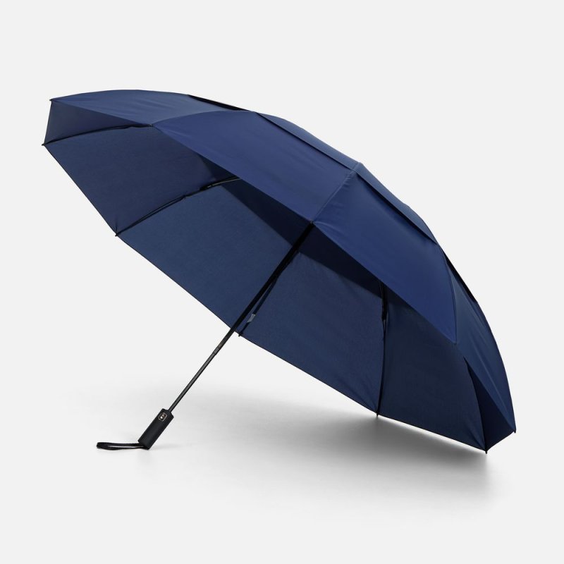 Зонт twoGether вне конкуренции — 10 гибких спиц для лучшей ветрозащиты, огромный двухслойный купол диаметром 130 см, который легко укроет двух-трех человек, и система обратного сложения для максимального комфорта.
