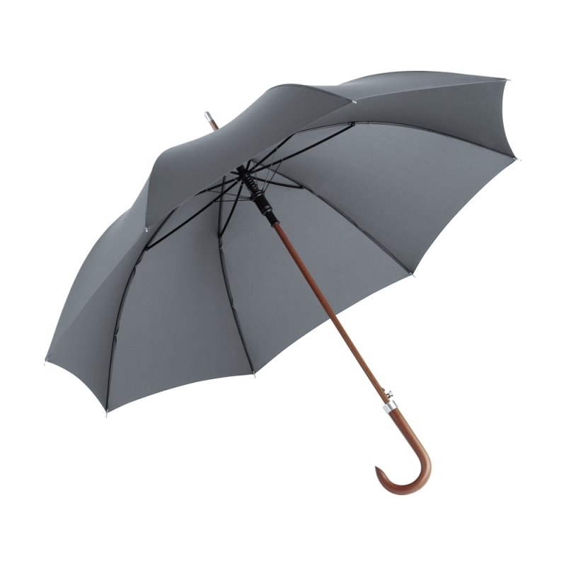 Этот элегантный зонт-трость с большим куполом и изящной деревянной ручкой будет отличным подарком к любому празднику! Тефлоновое покрытие купола защищает его от пятен и промокания.